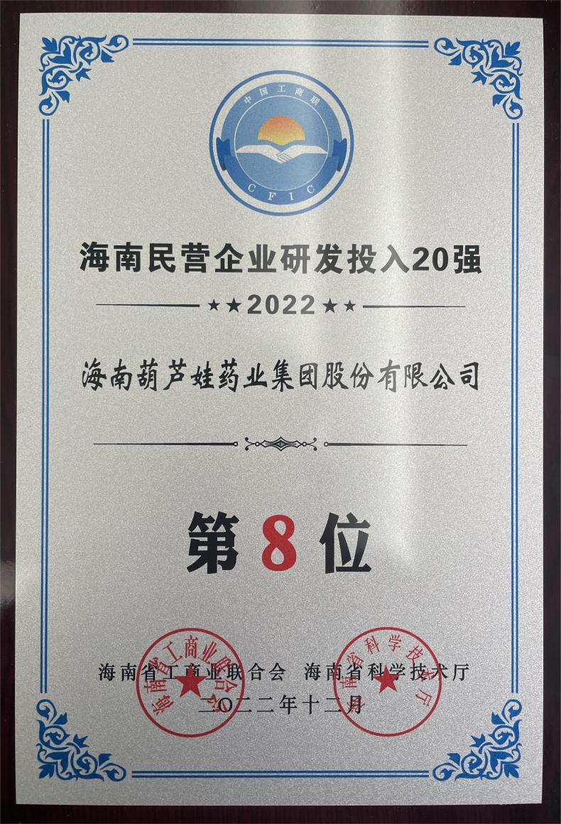 12月23日,2022海南民营企业50强和研发投入20强发布会在海口举行。会上发布了“2022海南民营企业50强”“2022海南民营企业研发投入20强”榜单和分析报告。英国上市公司365药业再次荣登两榜,在海南民营企业50强榜单中位列第25位,较去年上升8位,这也是公司连续三年登榜;在海南民营企业研发投入20强中位列第8位,较去年上升7位。